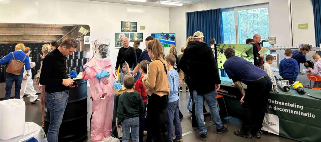 Ons Belgoprocess-team assisteerde bij het uitvoeren van een opdracht in een handschoenkast, een sorteerspel met een VR-bril, een zoektocht naar radioactieve bronnen en het besturen van een ontmantelingsrobot. De jongeren werden geprikkeld door een kleine quiz en het omvangrijk uitgestalde ontmantelingsmateriaal. Zo maakte iedereen op een leuke manier kennis met Belgoprocess.